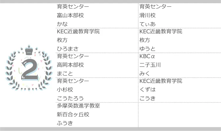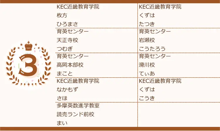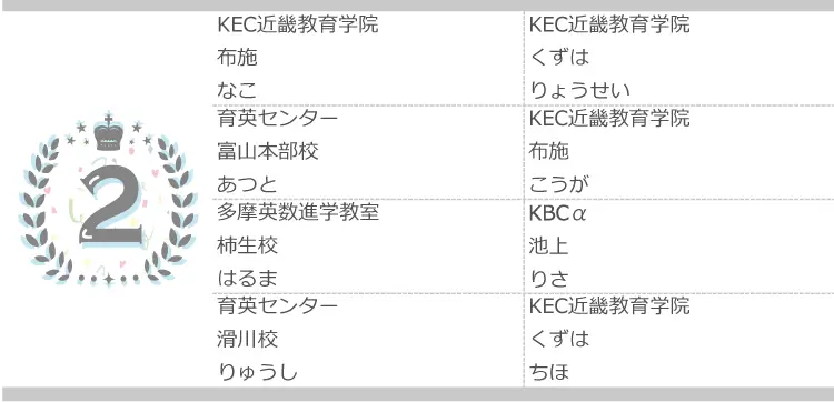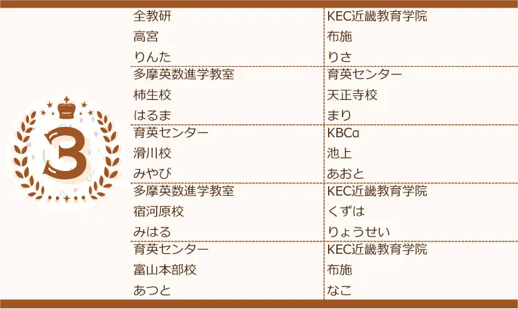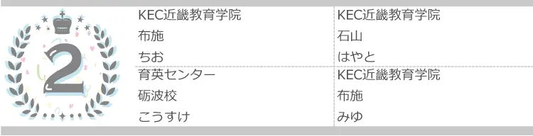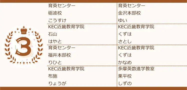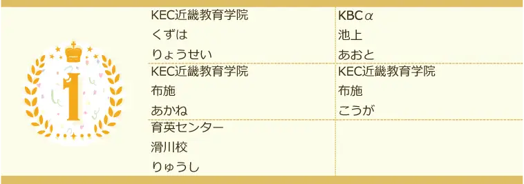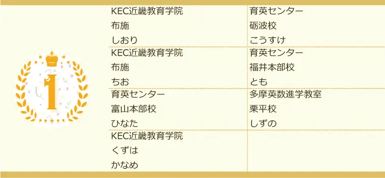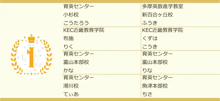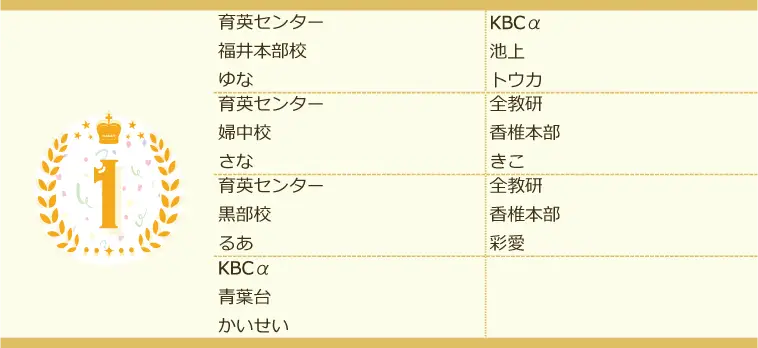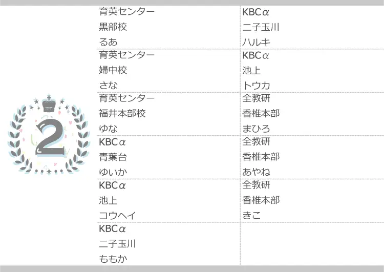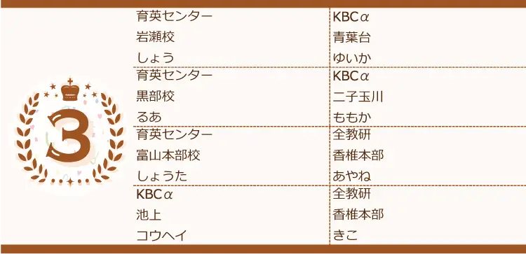 各講座、各授業回で1位~3位を獲得した生徒を掲載。