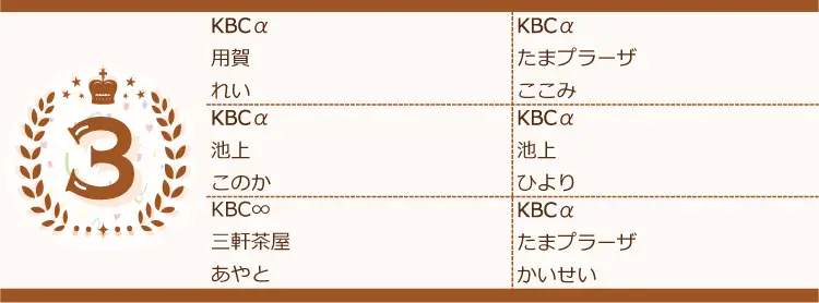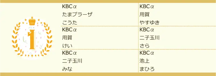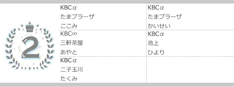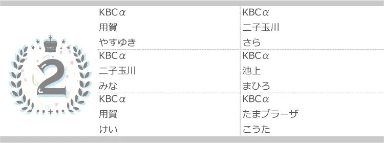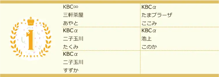 (例:1位を1回、2位を1回獲得した場合、1位と2位それぞれに掲載)